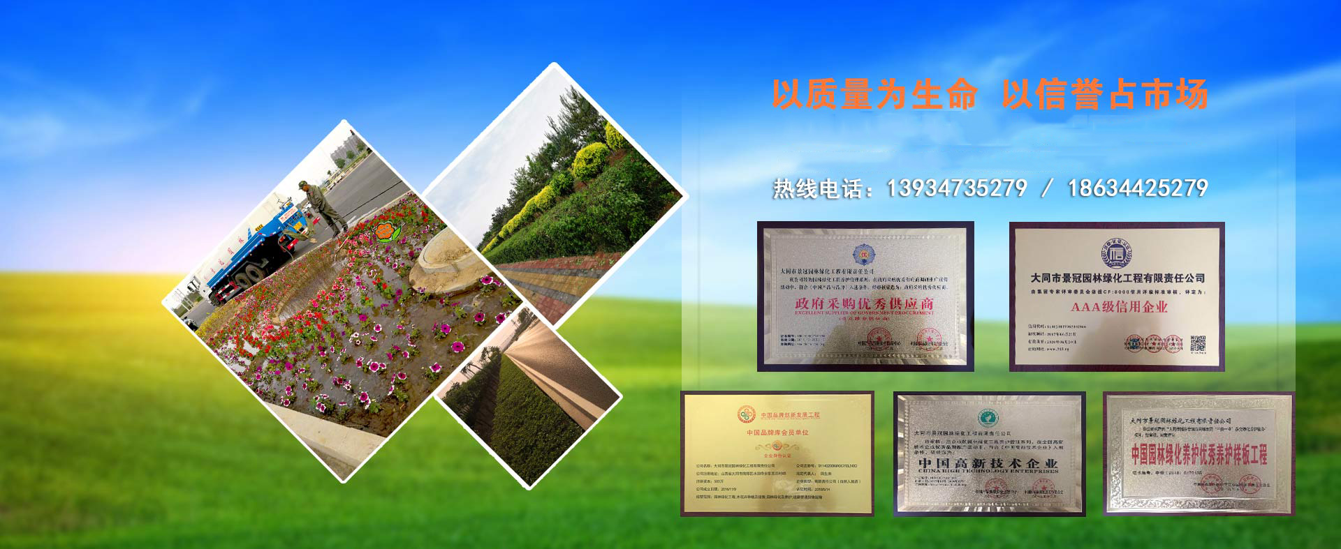 大同市景冠園林綠化工程有限責(zé)任公司是一家根植于設(shè)計(jì)、施工、植保養(yǎng)護(hù)、苗木花卉生產(chǎn)于一體的園林景觀企業(yè)。公司“以質(zhì)量為生命”、“以信譽(yù)求發(fā)展”這是公司一貫的經(jīng)營(yíng)宗旨。并以創(chuàng)新,誠(chéng)信,綠色,共享的發(fā)展理念,創(chuàng)造良好的企業(yè)環(huán)境。堅(jiān)持愛(ài)綠,護(hù)綠,保綠的方針為城市增添一份綠色,用綠色擔(dān)當(dāng)生態(tài)建設(shè)使命是我們共同追求的價(jià)值和企業(yè)目標(biāo)。以全新的管理模式,完善的技術(shù),周到的服務(wù),卓越的品質(zhì)為生存根本。幾年來(lái)我們致力于園林景觀植物領(lǐng)域的研究,在城市綜合體景觀,校園園林景觀,道路景觀,生態(tài)農(nóng)業(yè)景觀,美麗鄉(xiāng)村景觀,濕地景觀等多個(gè)領(lǐng)域參與規(guī)劃設(shè)計(jì)施工。不斷加大科技投入力度,加強(qiáng)人才的儲(chǔ)備,網(wǎng)絡(luò)技術(shù)的培訓(xùn),提升自主創(chuàng)新能力,不斷完善企業(yè)文化,用超前的技術(shù)制定出一套完整的園林植保技術(shù)管理方案。我們堅(jiān)持以擔(dān)當(dāng)為使命,用戶至上,服務(wù)至上,秉持初衷,不忘初心,實(shí)實(shí)在在,心無(wú)旁騖做好植保養(yǎng)護(hù)主業(yè),打造屬于自己的企業(yè)品牌,好好服務(wù)客戶,打動(dòng)客戶。